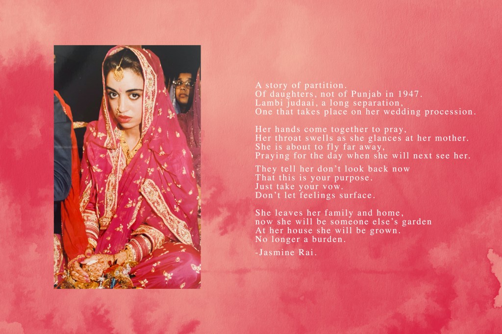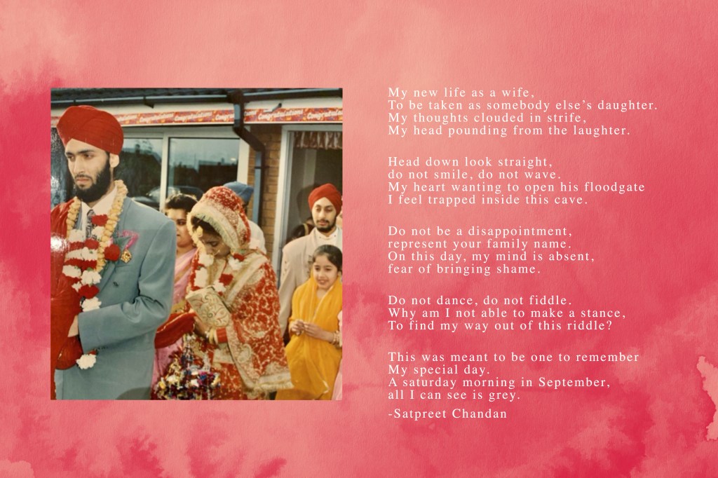 The first person I asked about weddings and wedding folk songs was my mother (pictured above on her wedding day). Talking about her wedding and wedding folk songs, she said “Marriage – I didn’t actually know what that term means but all I knew was that I wanted to fly away – I wanted to be free just like the chidiyan, which is why ‘chidiyan da chamba’ is my favourite wedding folk song.”